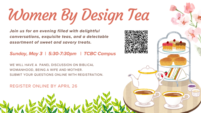 Unless indicated by the sign-up form or other information, all events are held on the campus of TCBC. Please note that all online sign-ups are also available on our church app.